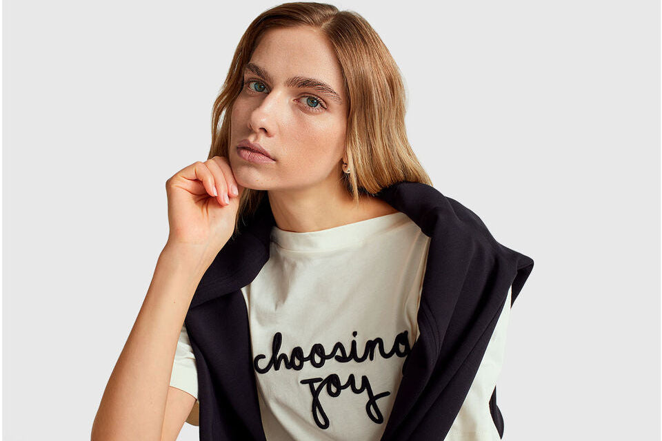 T-SHIRT WITH EMBROIDERED SLOGAN