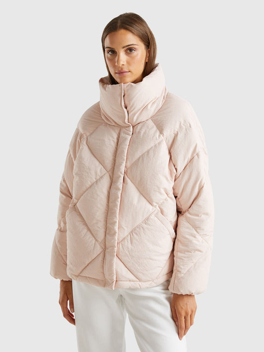 HIGH COLLAR PUFFER JACKET IN GENUINE RECYCLED DOWN