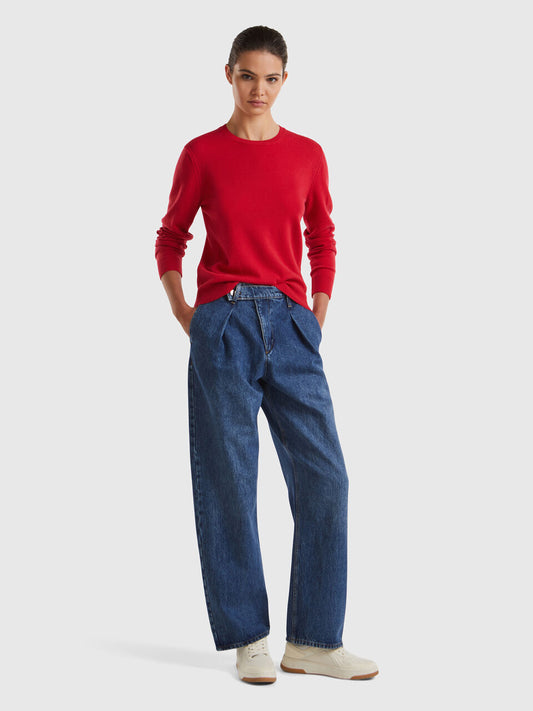 RED PLUM CREW NECK SWEATER IN PURE MERINO WOOL