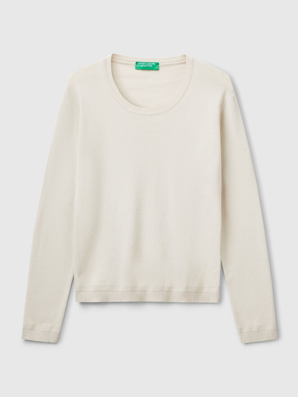 Long sleeve crew neck sweater in pure ribbed cotton. Classic cut and regular fit, for a casual and versatile garment.