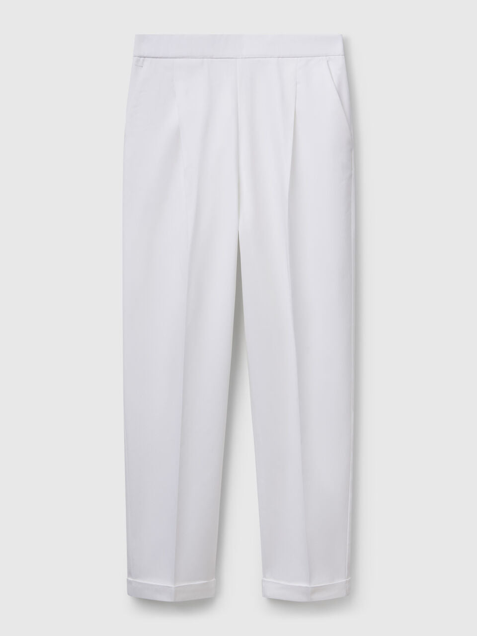 Long trousers in soft stretch cotton fabric. Waist with inner elastic on the back, leg with ironed crease and permanent cuff on the bottom. Front pockets and welt pockets on the back. Contemporary style, without renouncing comfort.
