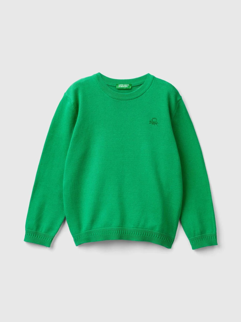 Long sleeve round neck sweater in pure tricot cotton. Regular fit and logo embroidered at left breast. An "Easy Care" piece that can be machine-washed.