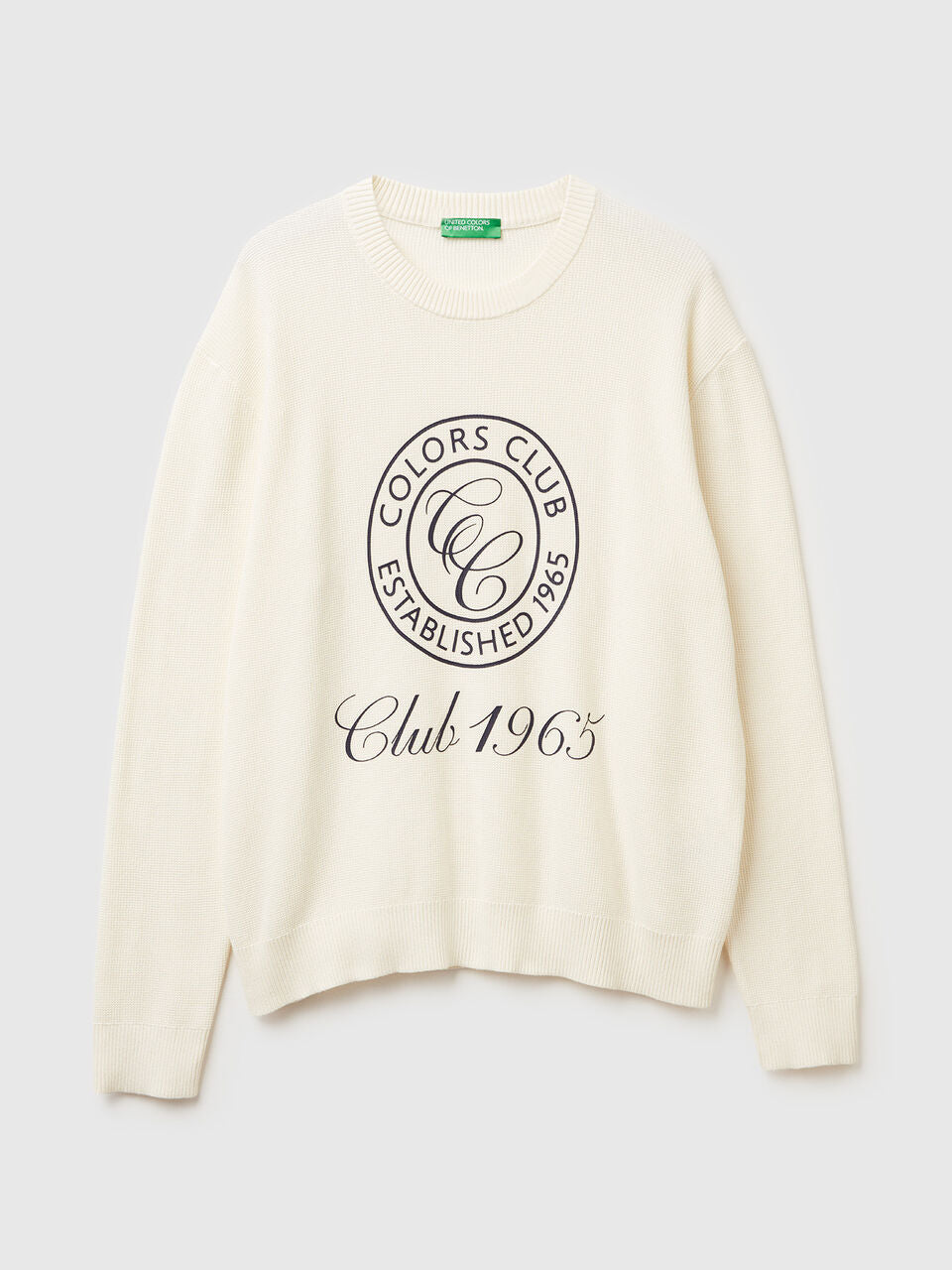 Crew neck long sleeve sweater in pure cotton. Relaxed fit and logo print on the front. For sporty chic looks.