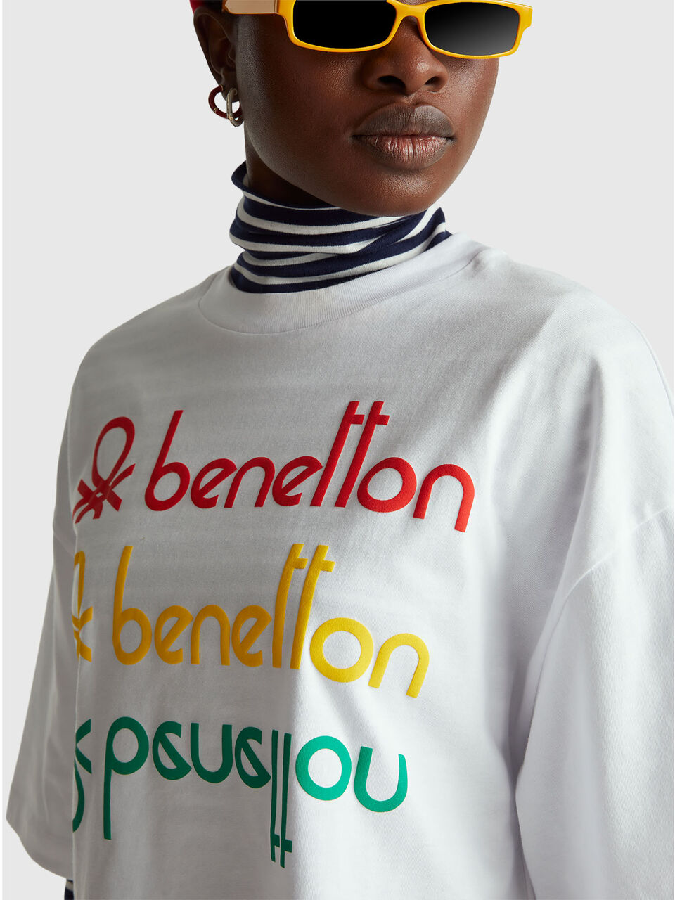 Crew neck T-shirt in soft pure cotton fabric with elbow sleeves. Boxy fit and front print. This article is part of the "Stranger Colors of Benetton" collection, the capsule inspired by Stranger Things and worn by its protagonists, developed in close collaboration with Amy Parris, the costume designer of the Netflix series.